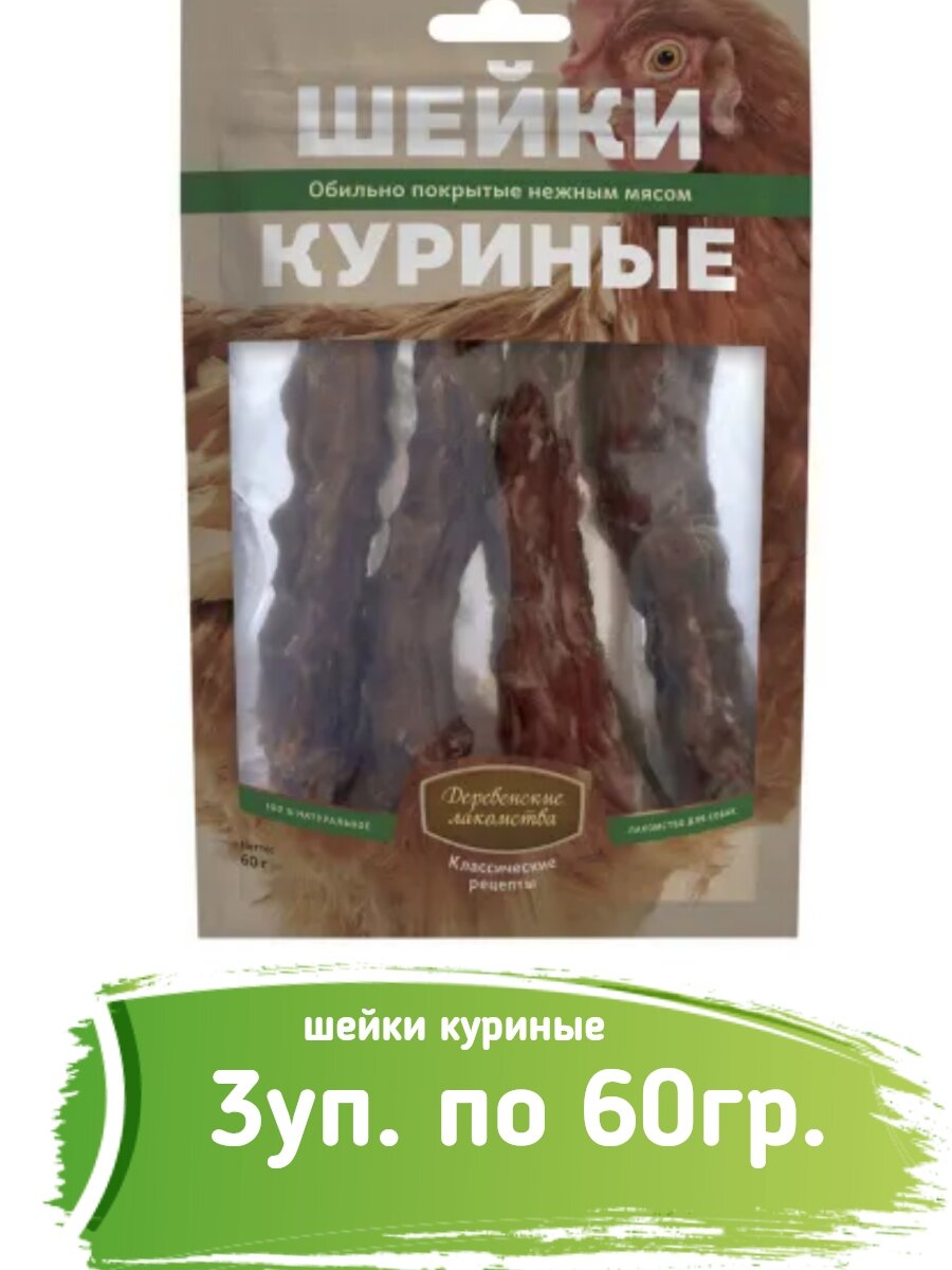 Деревенские лакомства 3шт х 60г шейки куриные для собак интересное: