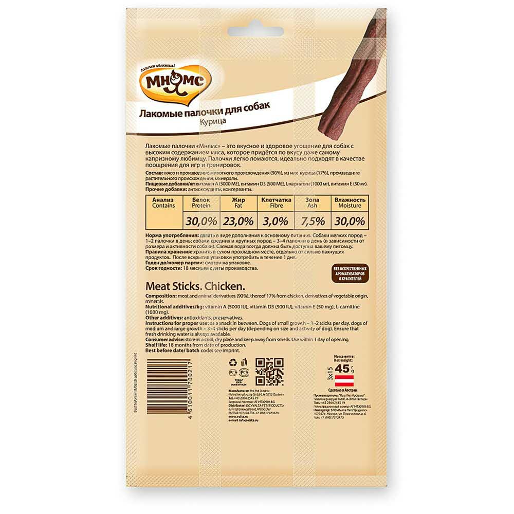 Мнямс лакомые палочки для собак с курицей - 3х15 г