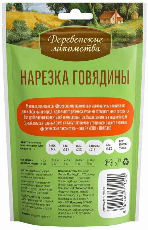 Лакомство Деревенские Лакомства для мини-пород Нарезка говядины 55г