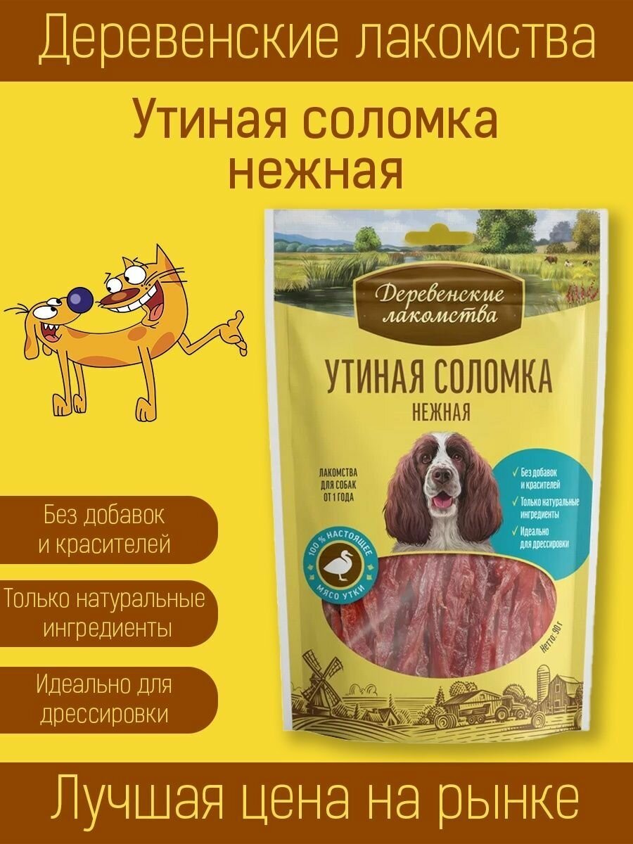 Деревенские лакомства "Утиная соломка нежная" для собак пакет, 90 гр