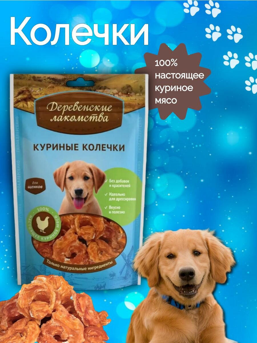 Лакомство деревенские лакомства мясные куриные колечки для щенков 100 гр