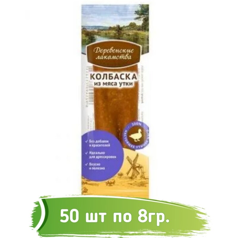 Деревенские Лакомства Мини колбаски из мяса утки для собак - 8 г х 50 шт