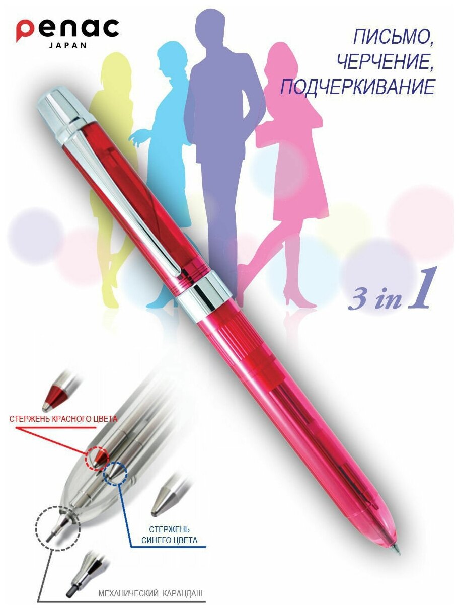 Ручка многофункциональная PENAC 0,35мм, синяя/красная + карандаш механический