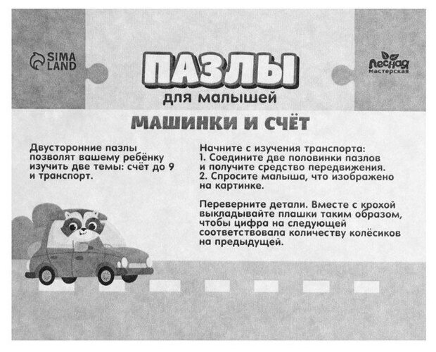 Ниже Вы можете прочитать отзывы на Пазлы для малышей «Машинки и счет», ознакомится с подробными характеристиками, посмотреть интересные обзоры и фотографии на Пазлы для малышей «Машинки и счет».