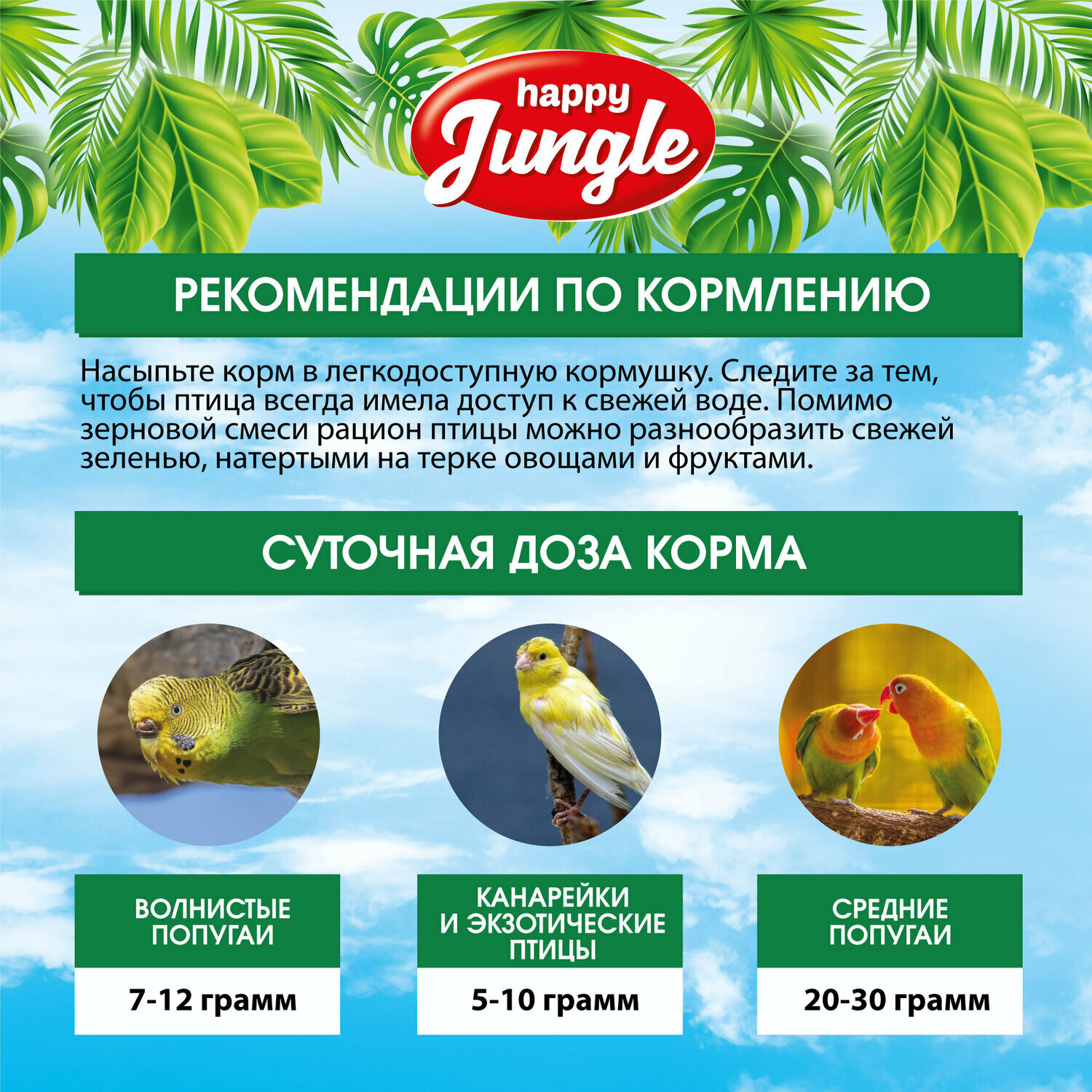 HAPPY JUNGLE Корм для декоративных птиц (универсал) 350г