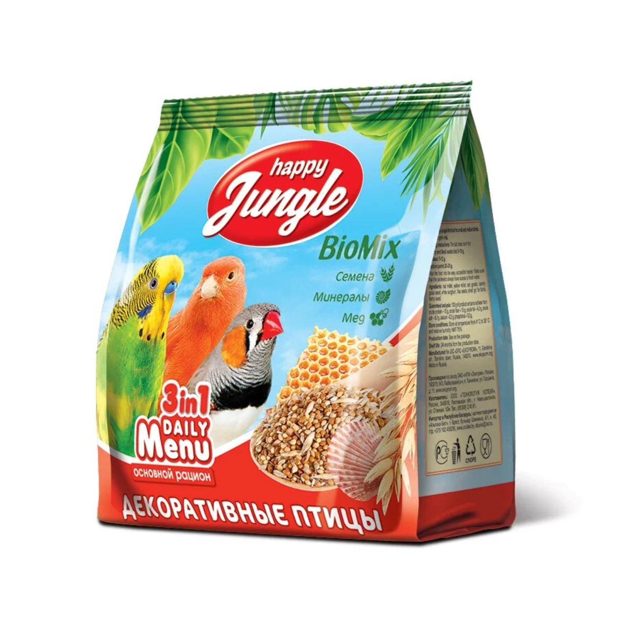 Корм HAPPY JUNGLE для декоративных птиц (универсал) 350 г