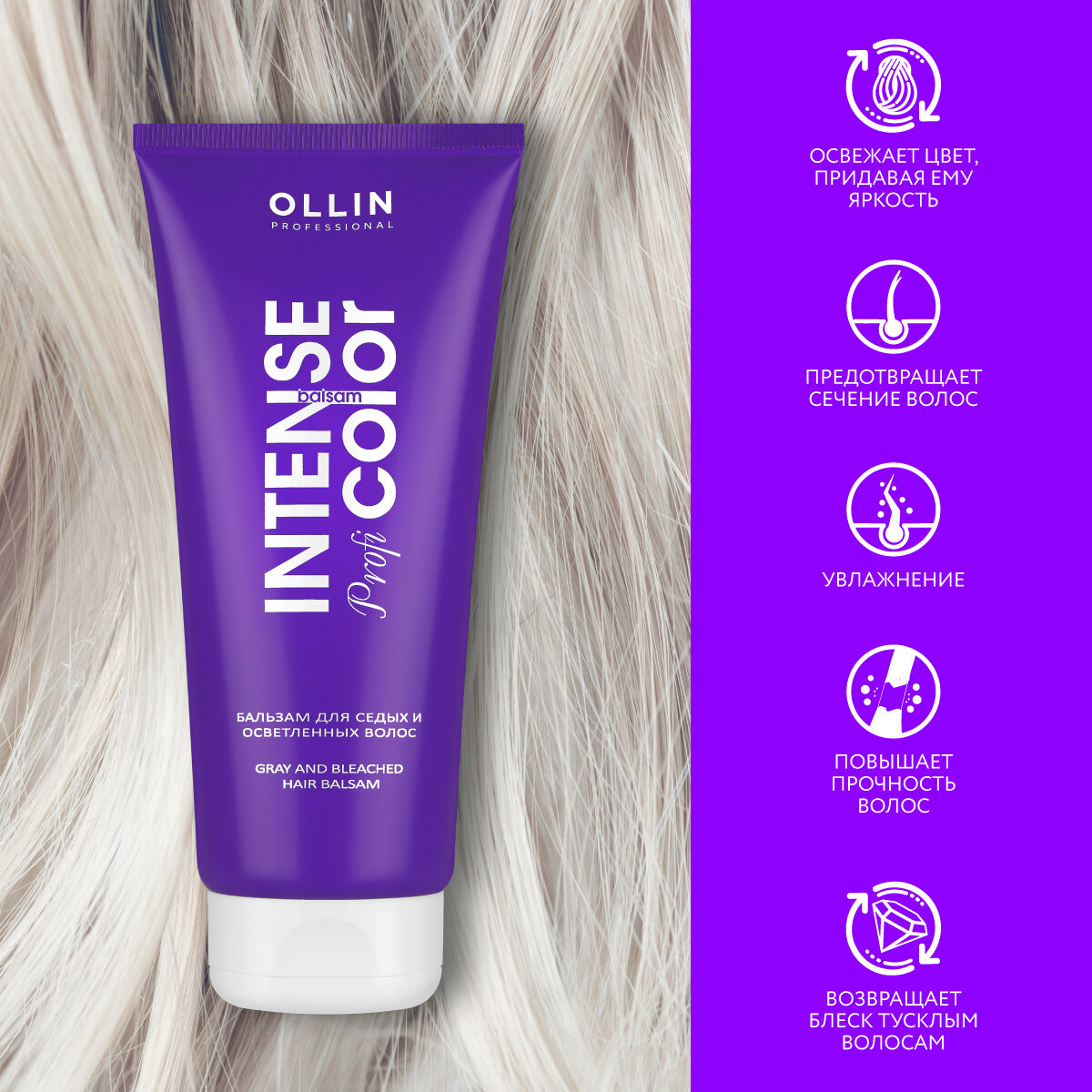 Купить Ollin, Бальзам для седых и осветленных волос INTENSE Profi COLOR, 200 мл