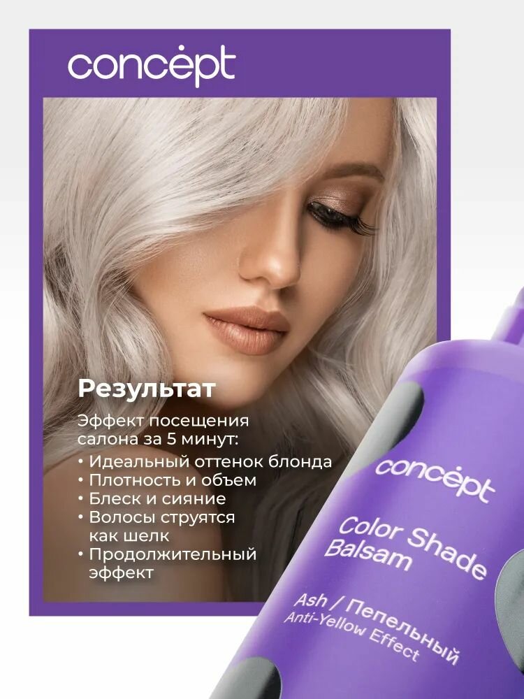 Concept Anti-Yellow Color Shade Balsam for Blond & Blonded Hair Ash Blond Effect - Концепт Анти Еллоу Колор Шейдс Блонд Эш Оттеночный бальзам для нейтрализации желтизны "Эффект пепельный блонд", 300 мл -