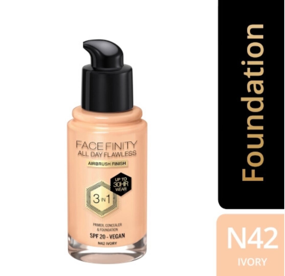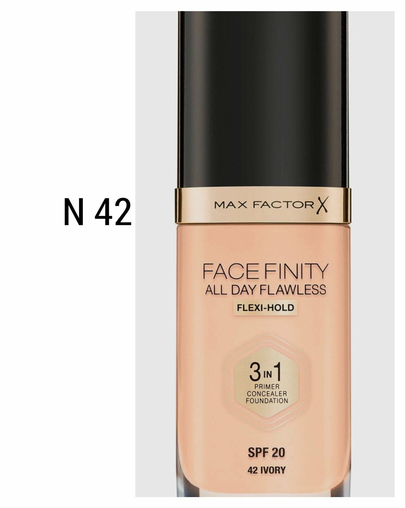 Max Factor Тональная эмульсия Facefinity All Day Flawless 3-in-1, SPF 20, 30 мл/45 г, оттенок: 42 Ivory