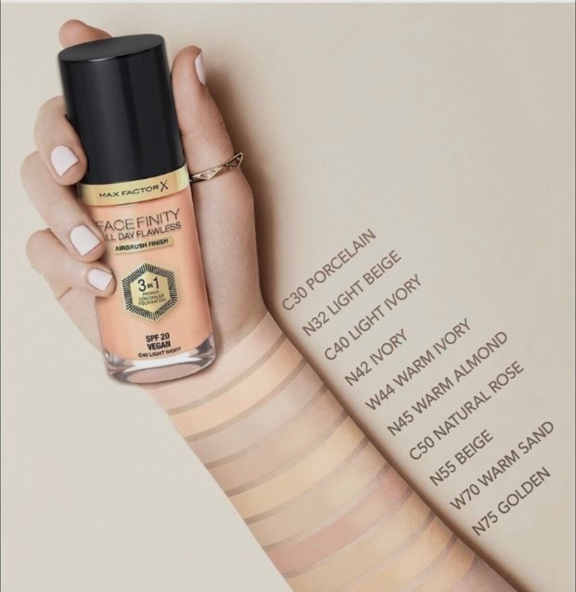 Max Factor тональный крем FACEFINITY ALL DAY FLAWLESS 3 IN 1 VEGAN FOUNDATION C50 NATURAL ROSE