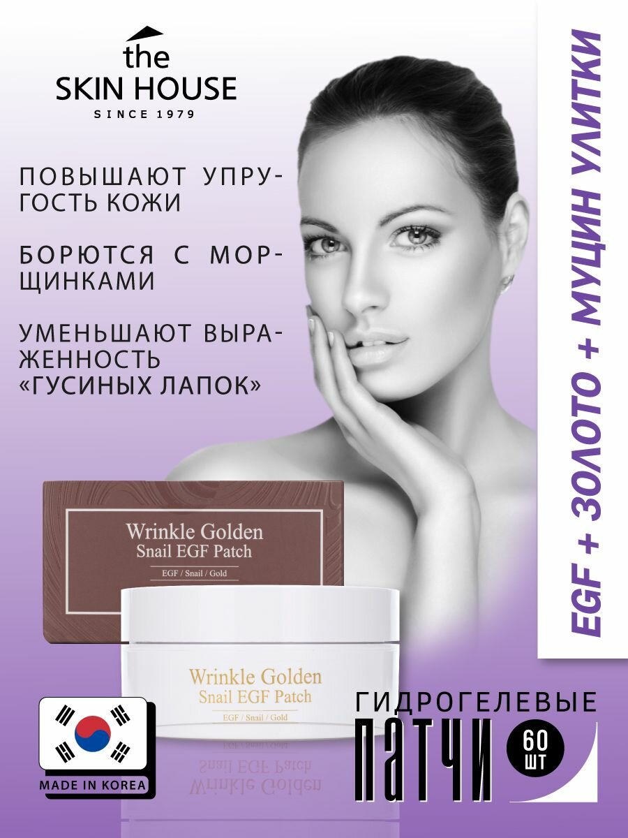 THE SKIN HOUSE Маска-патч для лица Wrinkle Golden Snail Egf,с EGF золотом и муцином улитки, 90г, 60шт