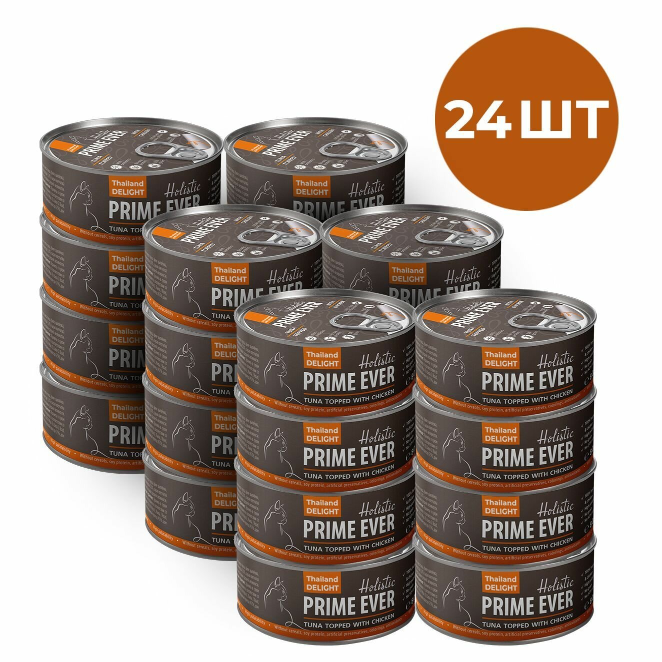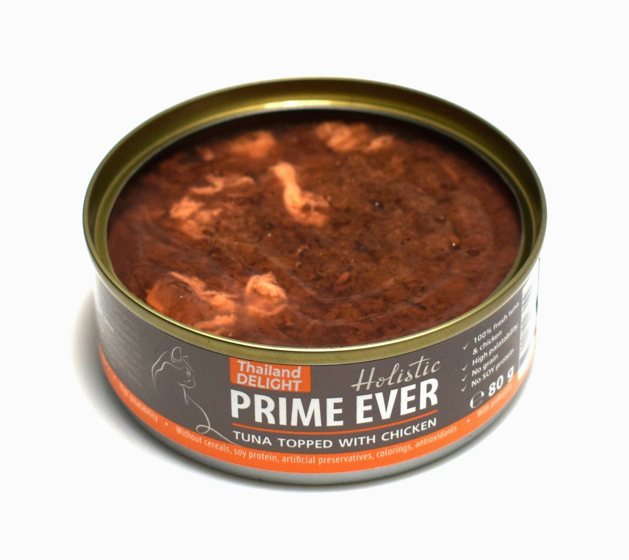 PRIME EVER TUNA TOPPED WITH CHICKEN холистик для кошек и котят с тунцом и цыпленком в желе (80 гр х 24 шт)