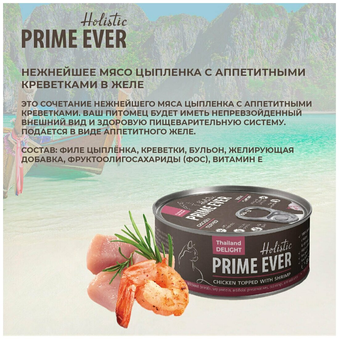 Влажный корм для кошек Prime Ever 3B консервы цыпленок креветки в желе,упаковка 80 гр х 24 шт