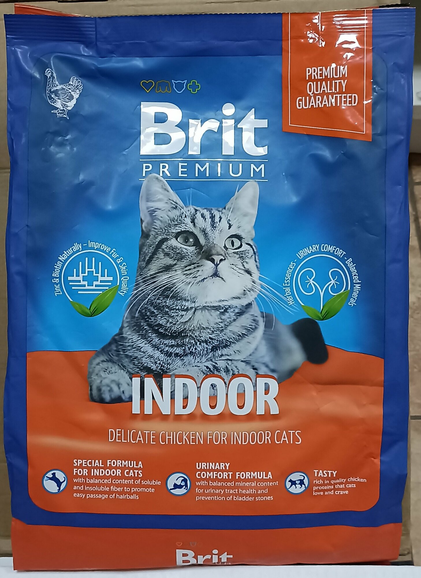 Brit Premium Cat Indoor для взрослых домашних кошек Курица, 2 кг.