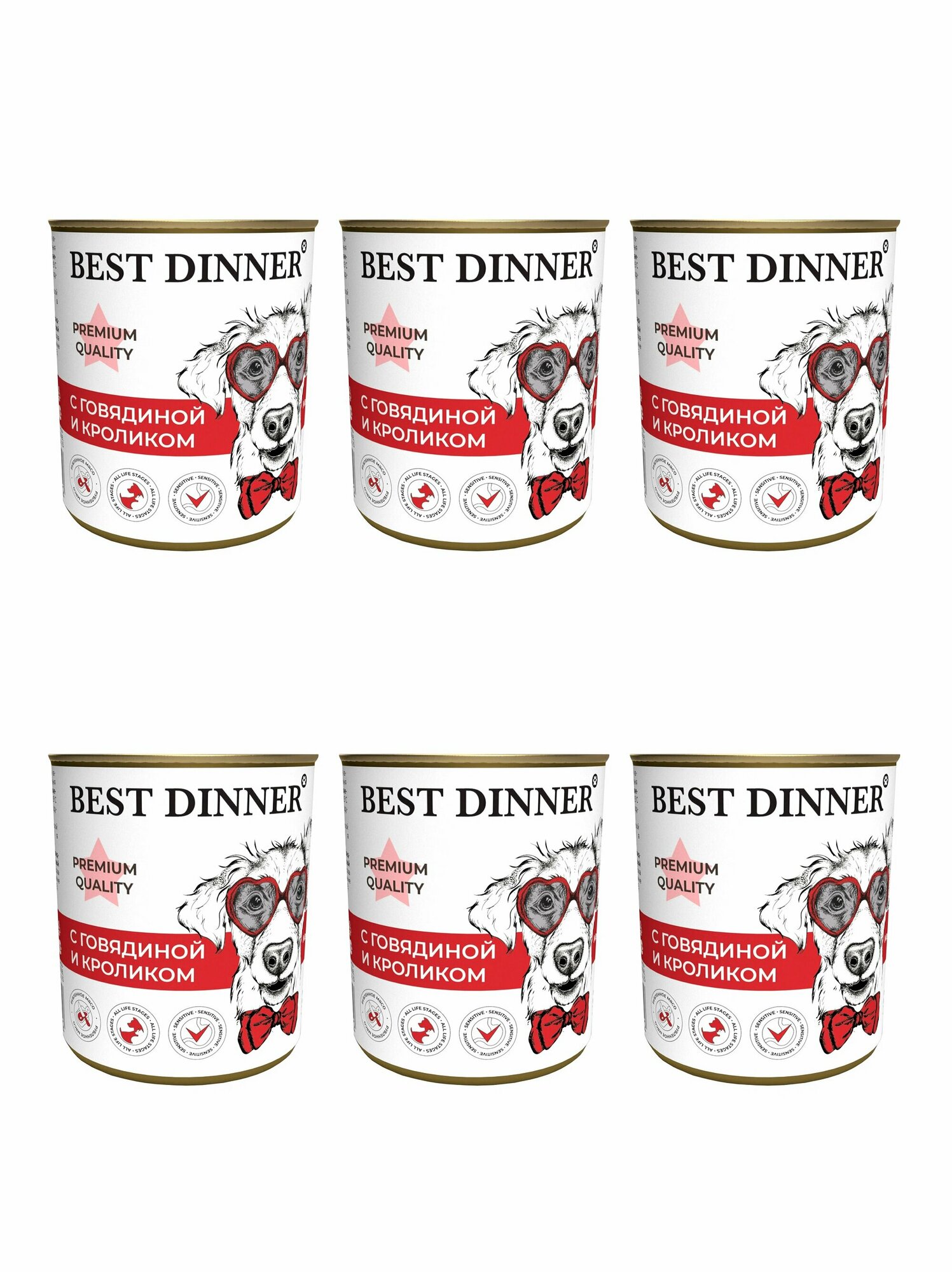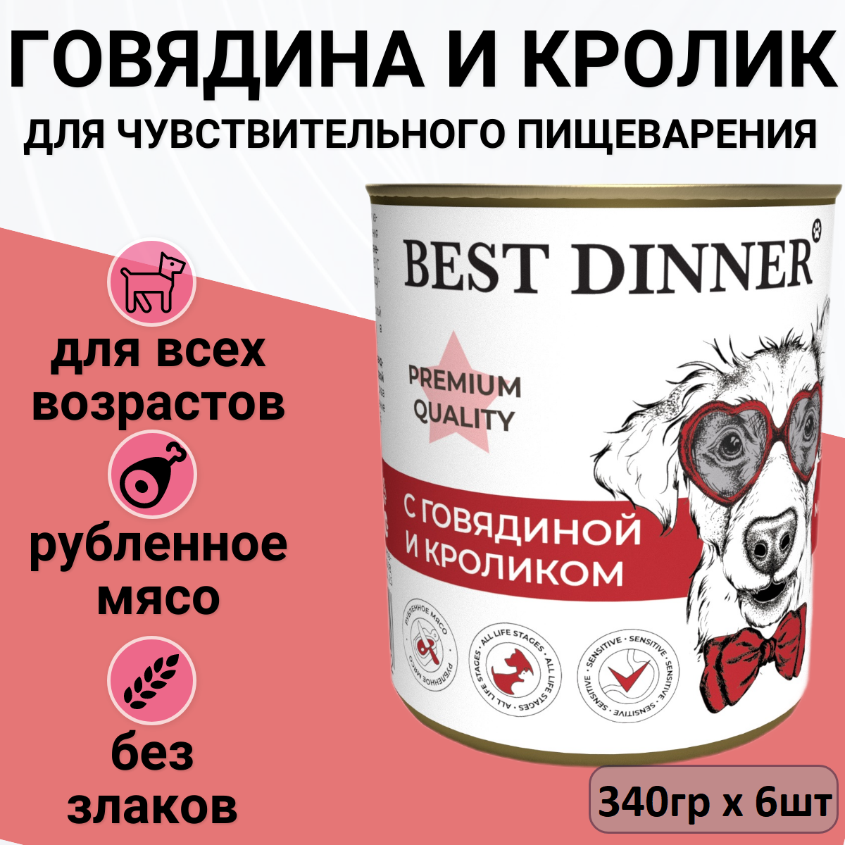 BEST DINNER PREMIUM меню № 3 для собак и щенков с говядиной и кроликом (340 гр х 12 шт)
