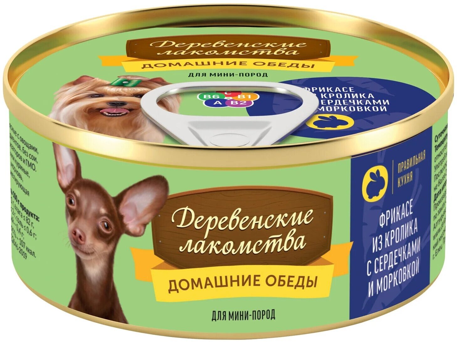Деревенские лакомства Домашние Обеды консервы для собак мини пород (фрикасе из кролика с сердечками и морковкой), 100г 0.1 кг