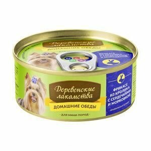 Деревенские лакомства Домашние Обеды консервы для собак мини пород (фрикасе из кролика с сердечками и морковкой), 100г 0.1 кг