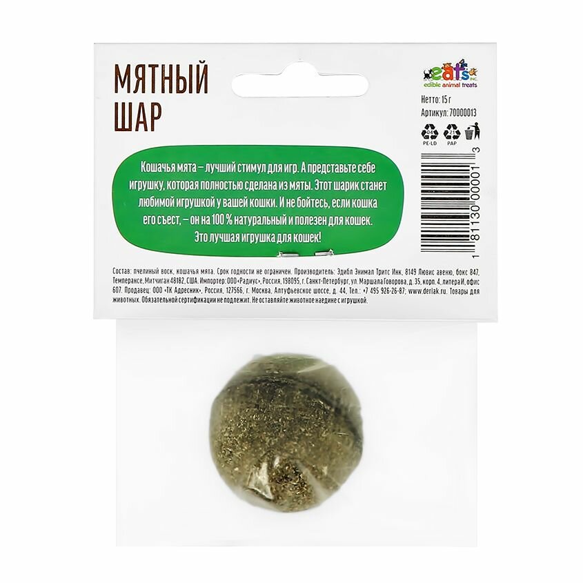 Деревенские лакомства Игрушка для кошек Мятный шар 15г, 3 упаковки интересное: