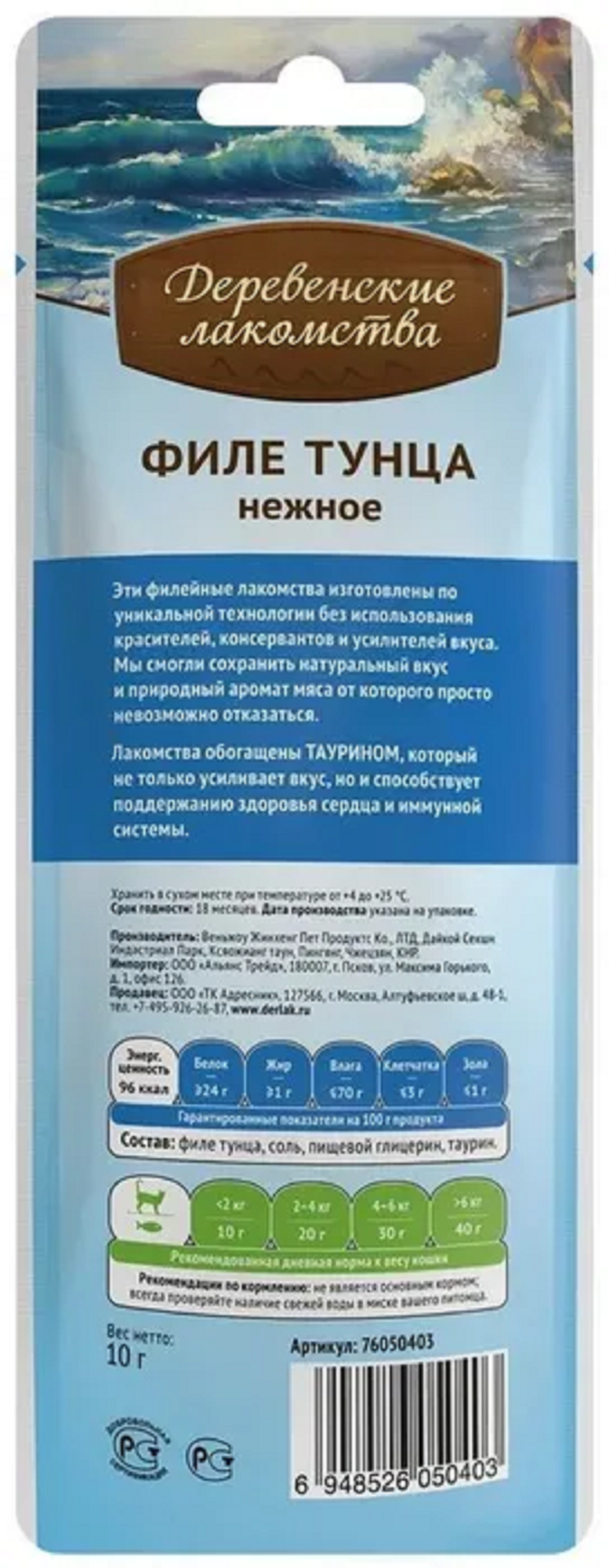 Деревенские лакомства 76050403 для кошек Филе тунца нежное 10г(10 штук)