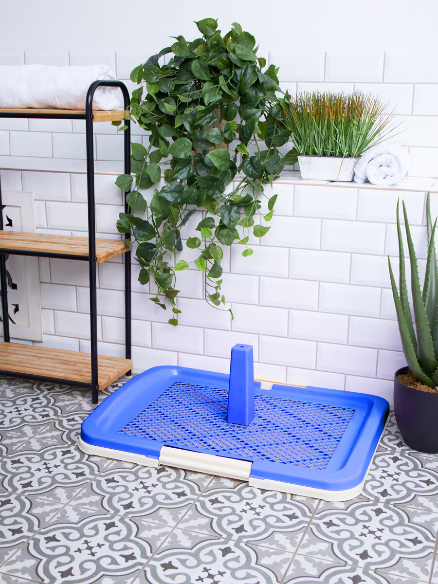 Туалет лоток для собак ZooOne со столбиком 63*48*6(20) см, синий