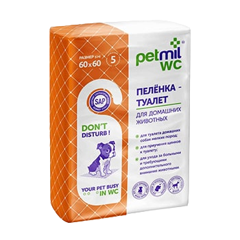 #(C)Петмил Пеленка впитывающая одноразовая с суперабсорбентом 60х5шт