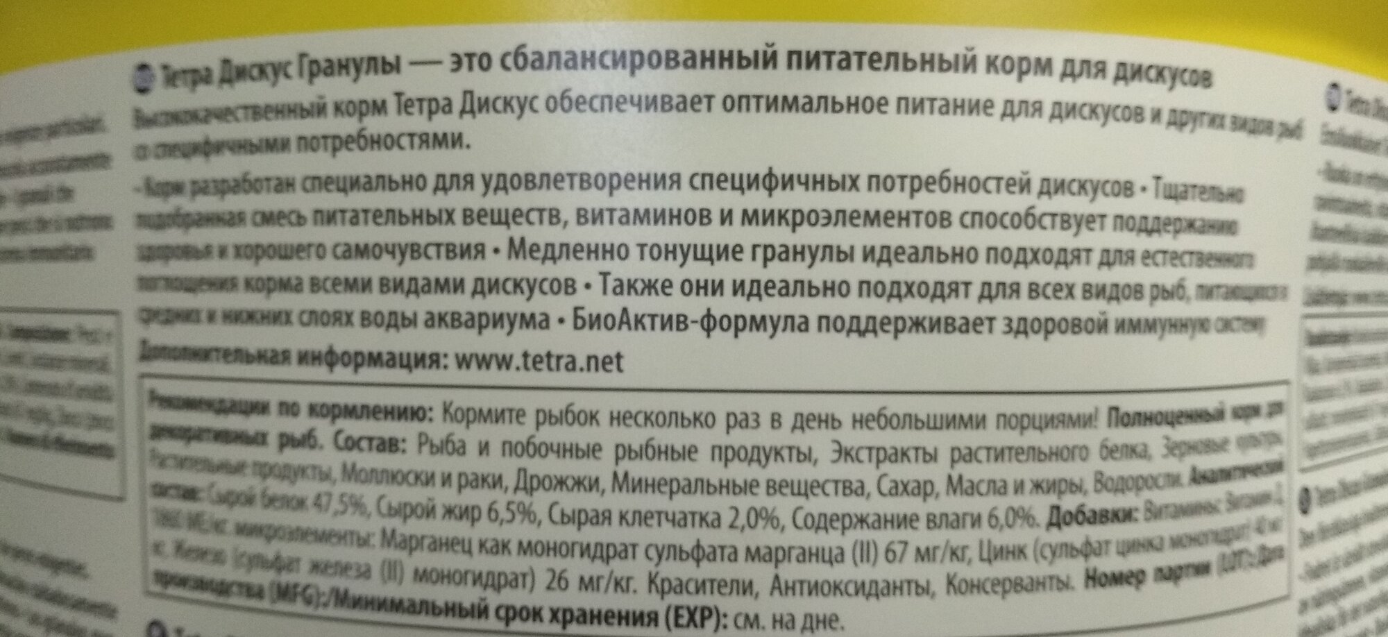 | Плюсы: | Полноценный корм для Дискусов, отличного качества. |