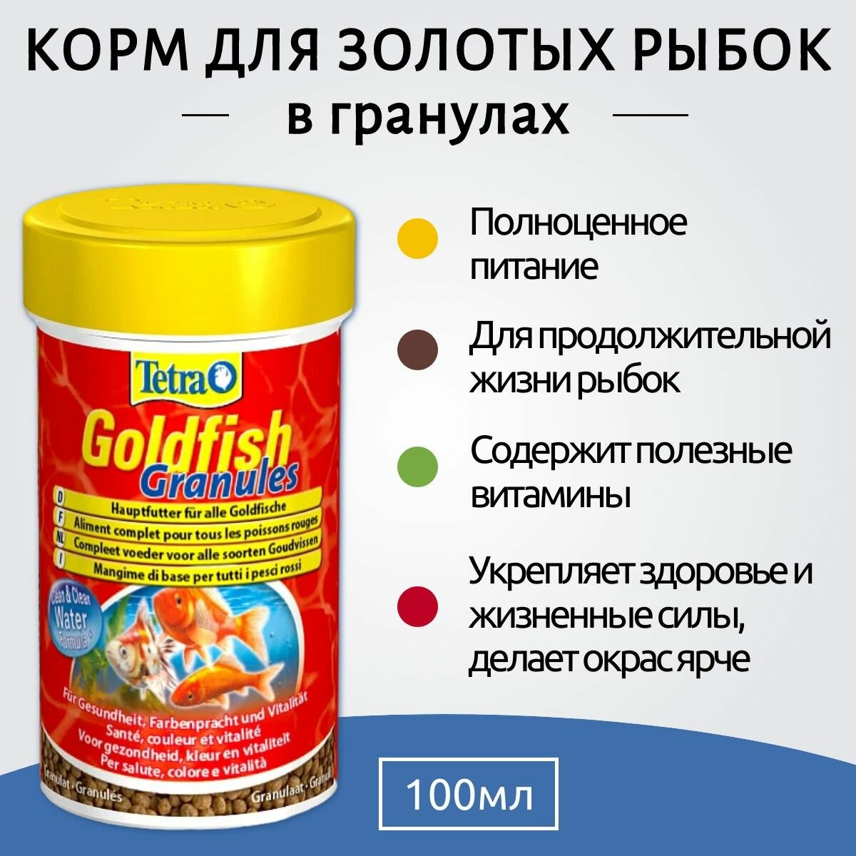 TETRA GOLDFISH GRANULES – Тетра корм-гранулы для золотых рыбок и других холодноводных рыб (100 мл)