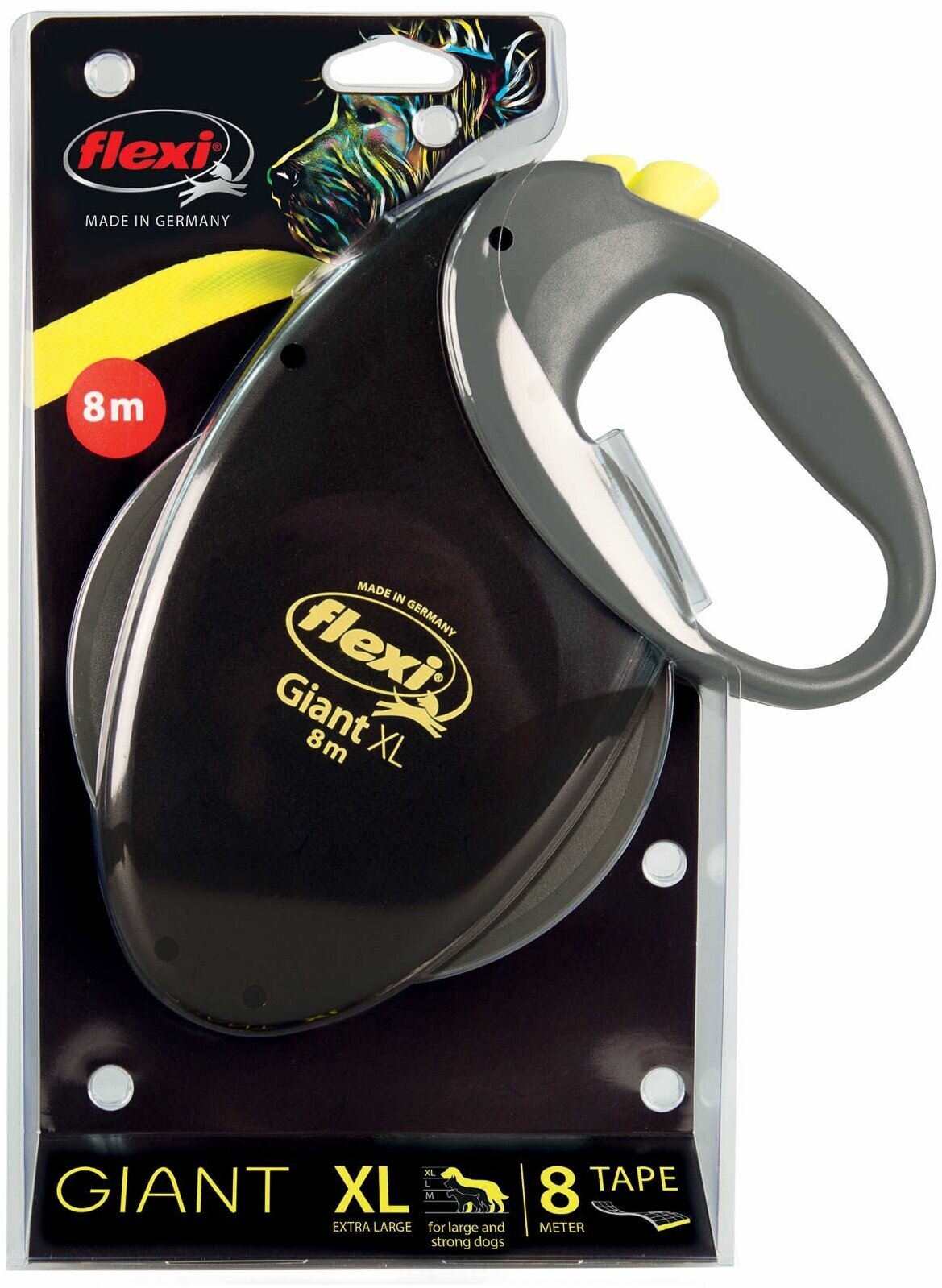 FLEXI рулетка GIANT NEON XL (от 50 КГ) ремень 8 М цвет: черный