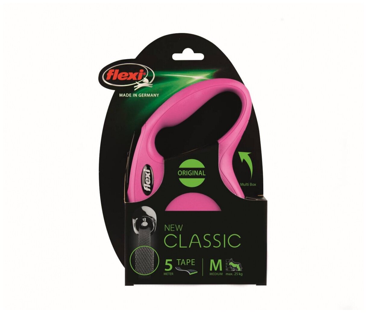 Поводок-рулетка Flexi New CLASSIC М, 5 м, 25 кг, розовый