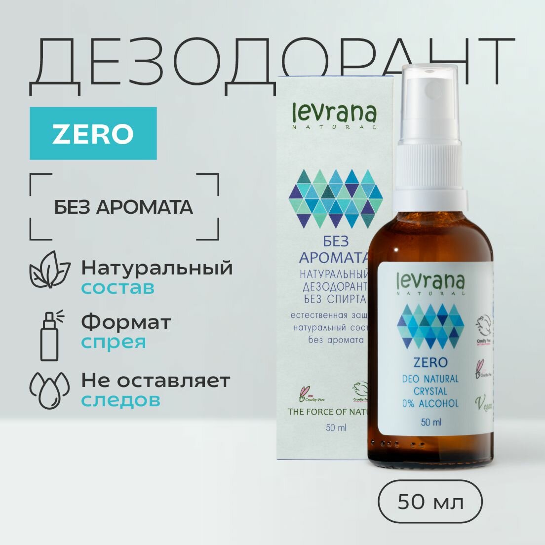 Levrana Натуральный дезодорант женский мужской ZERO без запаха, гипоаллергенный, спрей, 50 мл