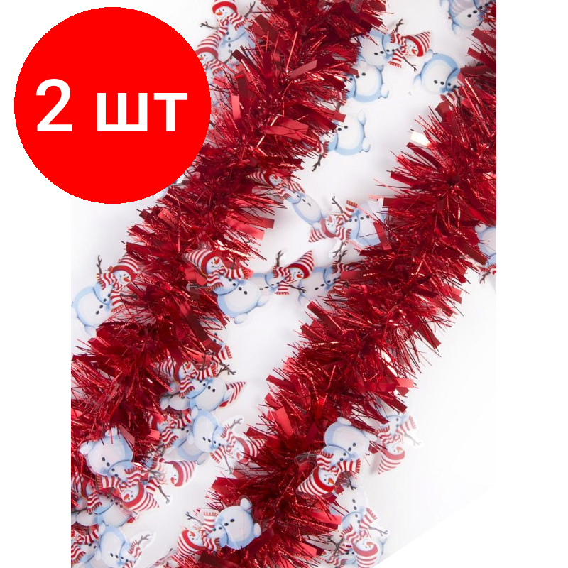 Купить Комплект 2 штук, Мишура новогодняя Красная со снеговиками из полиэтилена / 2Mx8см арт.78840