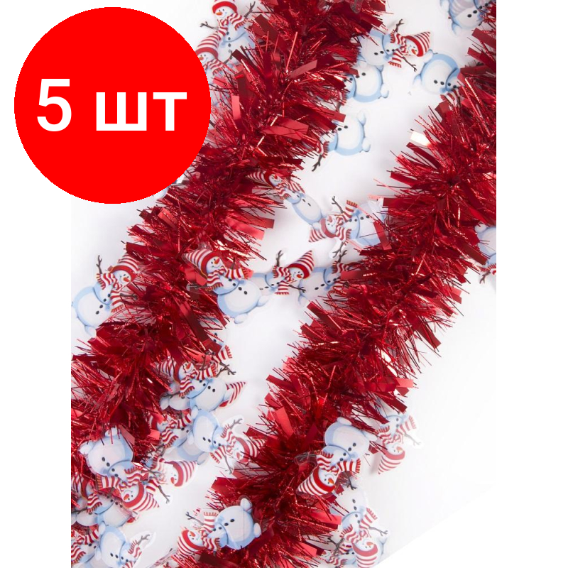Купить Комплект 5 штук, Мишура новогодняя Красная со снеговиками из полиэтилена / 2Mx8см арт.78840