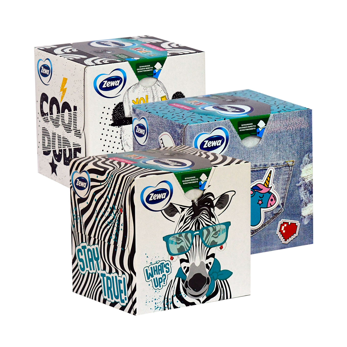 Салфетки бумажные в коробке Zewa Kids, 3 слоя, 60 шт.