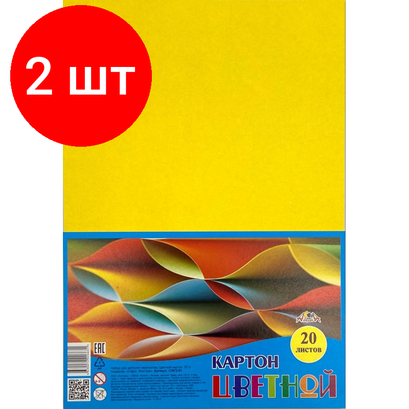 Купить Комплект 2 штук, Картон цветной Желтый 20л А4 одного цвета С2672-01