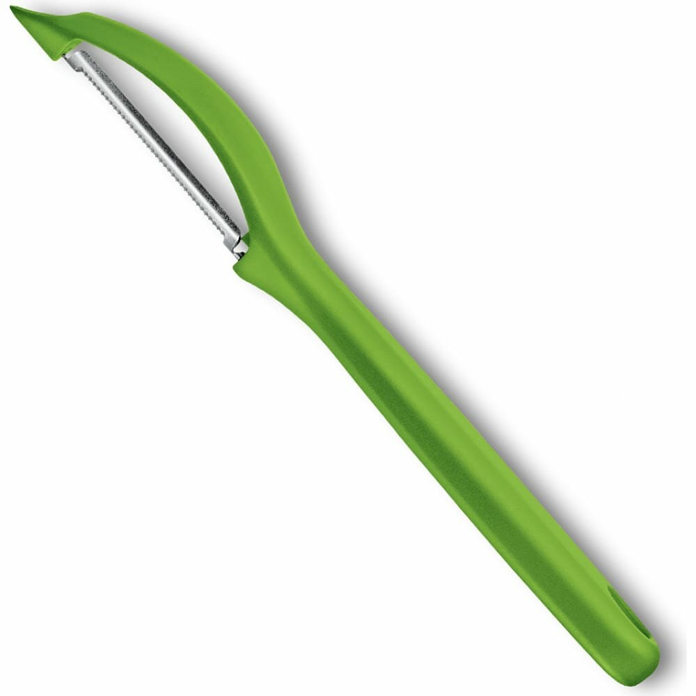 Овощечистка нож VICTORINOX универсальный, двустороннее зубчатое лезвие из нержавеющей стали, зелёная пластиковая рукоять