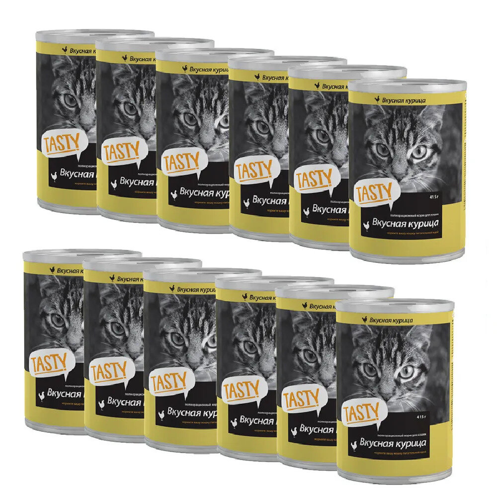 Tasty консервированный корм для кошек, с курицей в соусе, ж/б, 415 гр * 12 шт
