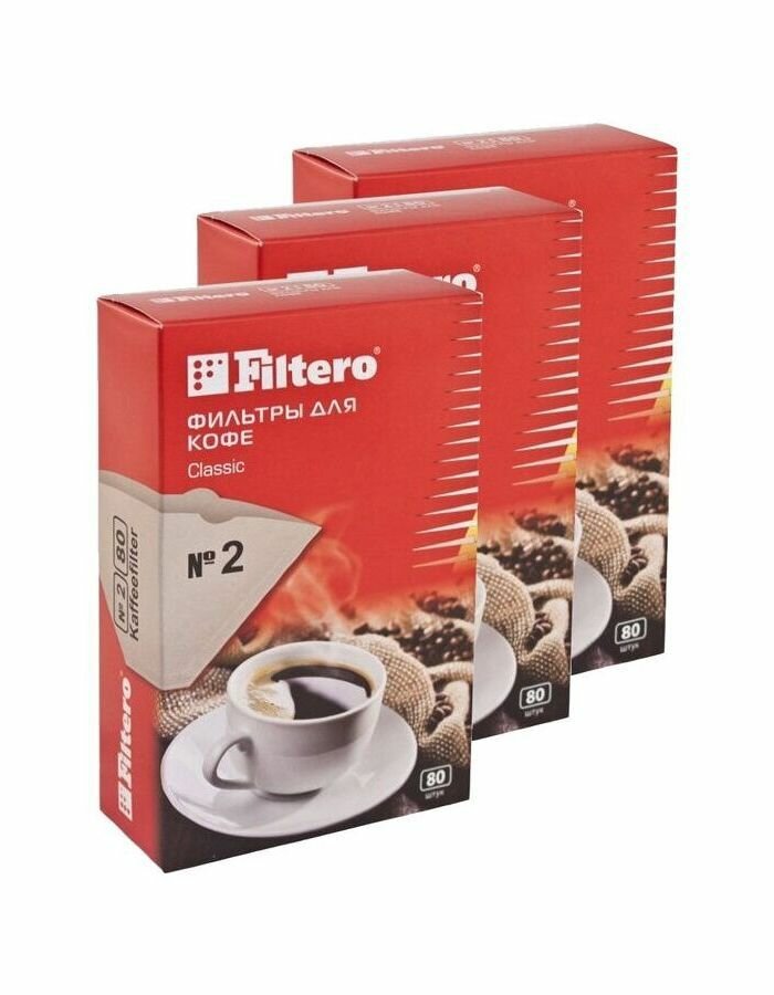Комплект фильтров для кофе, кофеварки и кофемашин Filtero Classic №2, 80штук, неотбеленные