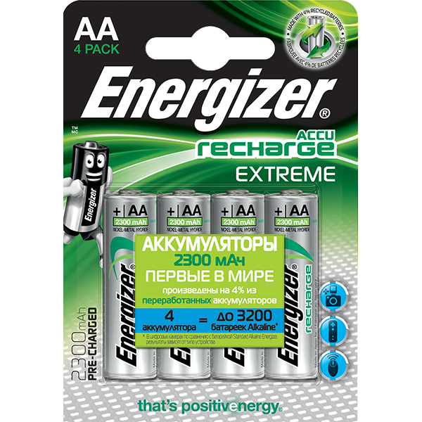 Аккумуляторы Energizer Recharge Extreme AA 2300mAh, 4 шт.