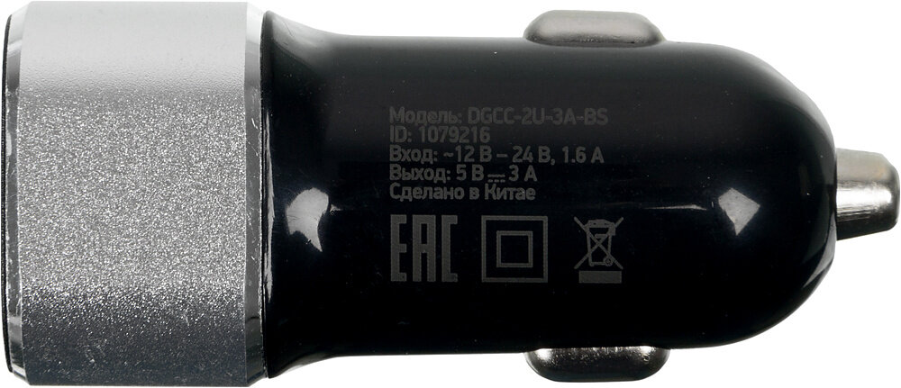 Купить Автомобильное зар./устр. Digma DGCC-2U-3A-BS черный