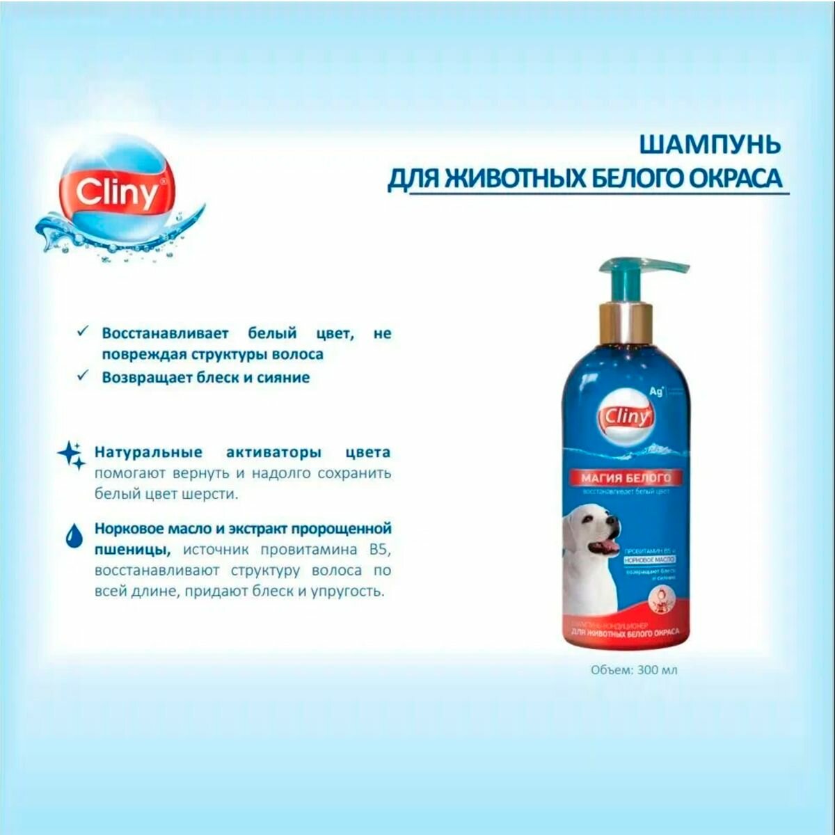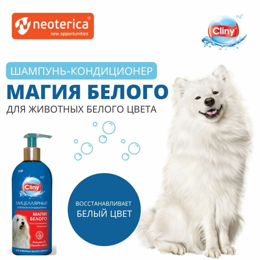 Шампунь-кондиционер CLINY Магия белого для животных белого окраса 300мл