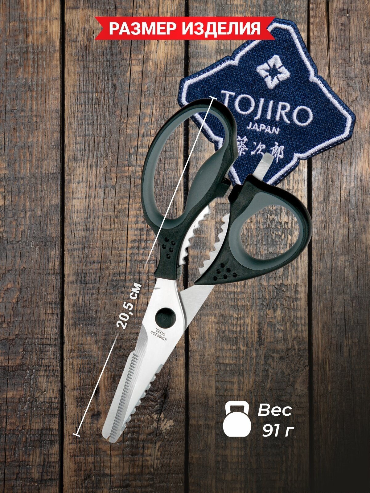 Кухонные ножницы TOJIRO (FC-419), Нержавеющая сталь, многофункциональные, Япония