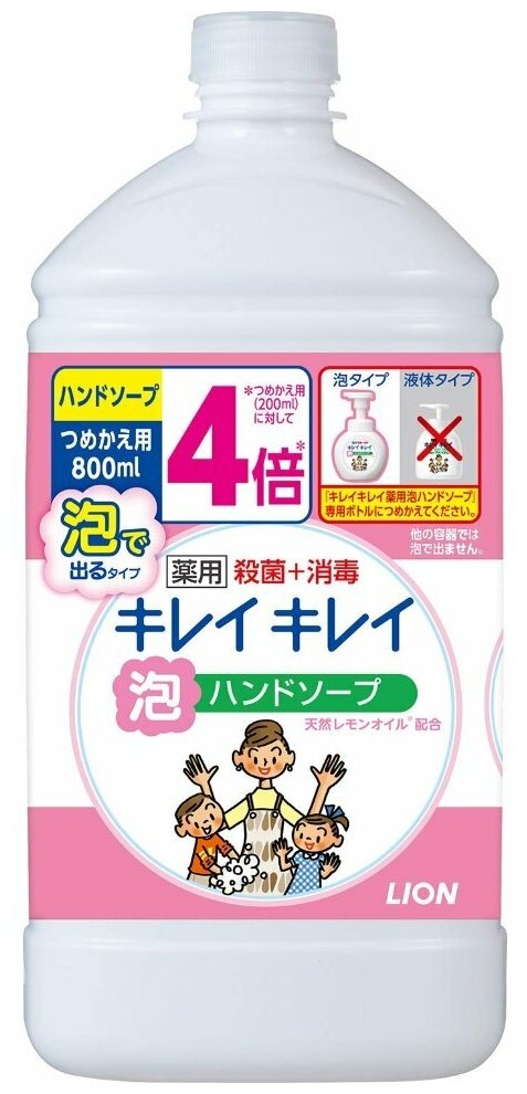 Lion kirei kirei пенка для рук с ароматом фруктов, сменная упаковка, 800 мл