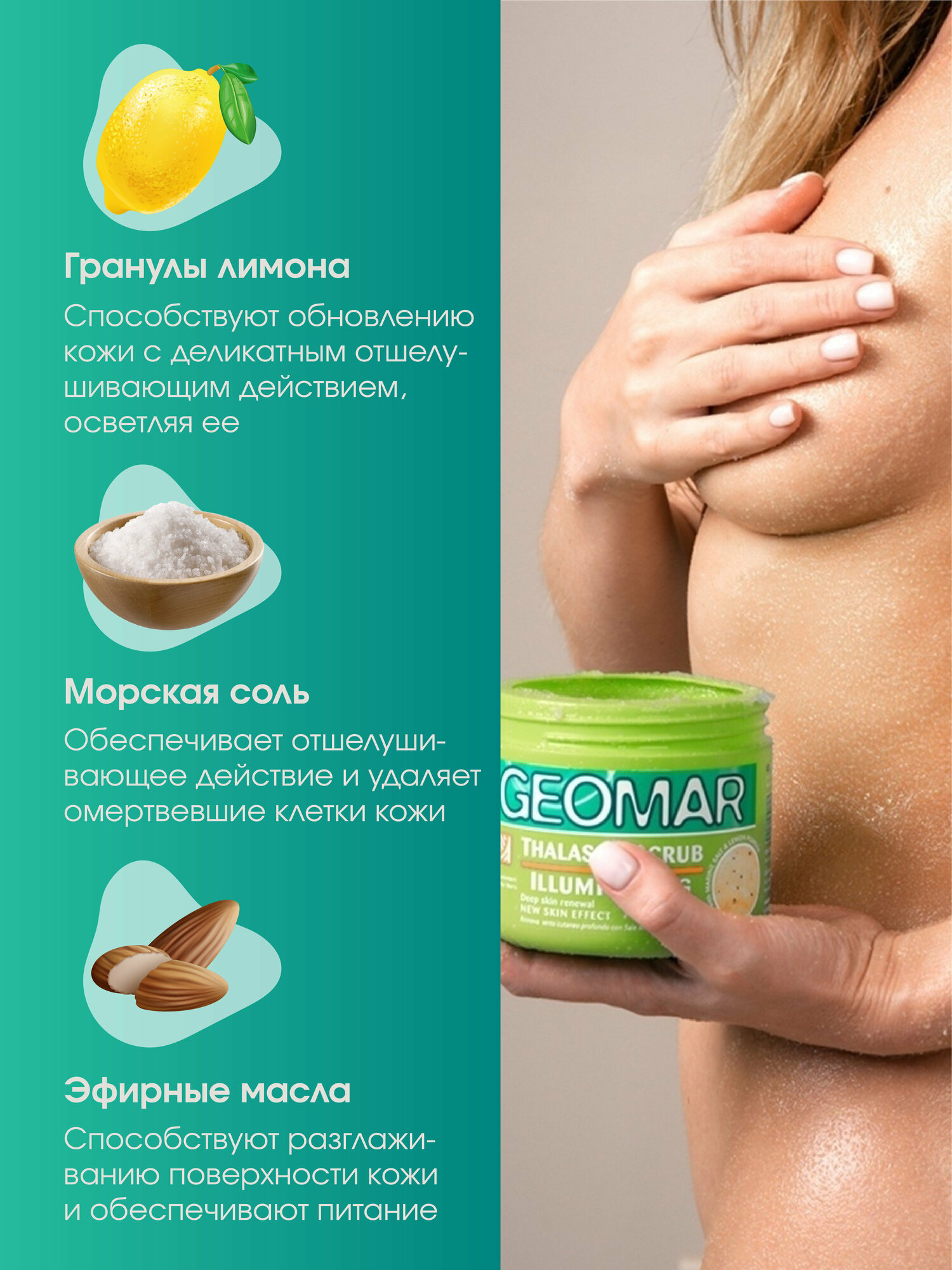 Талассо-скраб осветляющий с гранулами лимона GEOMAR ILLUMINATING THALASSO SCRUB WITH LEMON POWDER / вес 600 г