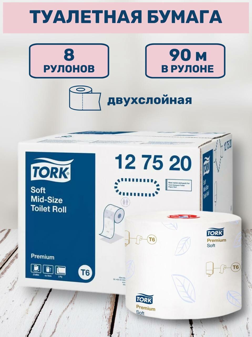 СохранитьТуалетная бумага Tork Premium Mid-size в миди-рулонах (система T6) 90м, арт. 127520 8шт интересное: