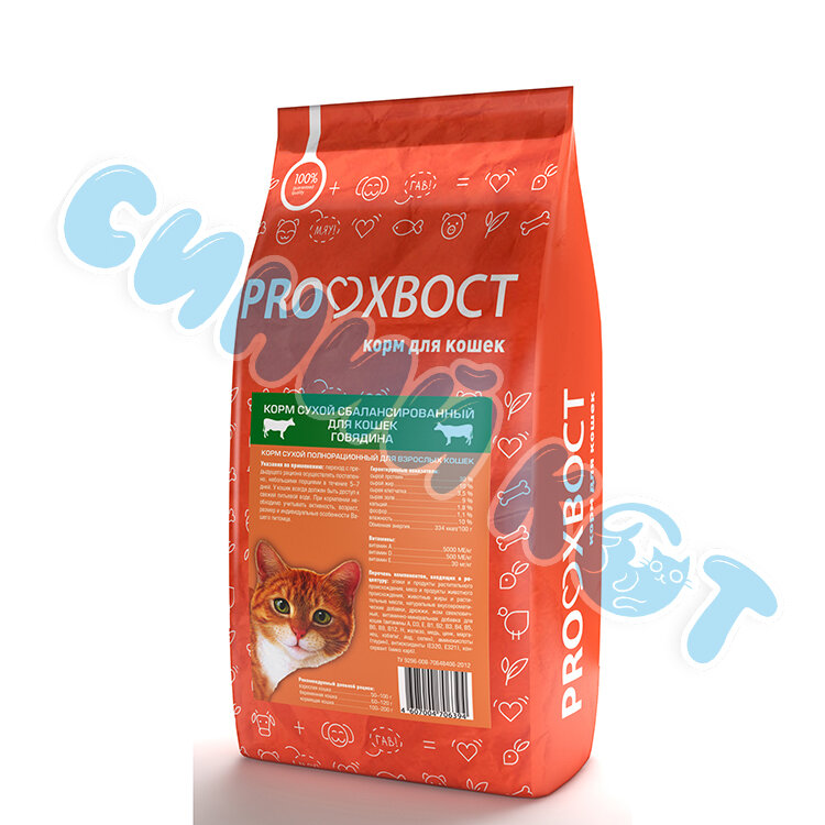 Корм ProХвост для кошек с говядиной, 10 кг