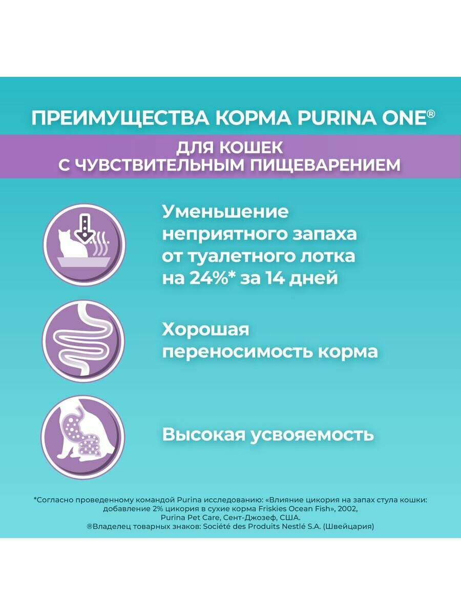 Сухой корм Purina ONE для кошек с чувствительным пищеварением, с высоким содержанием индейки, 1,5 кг
