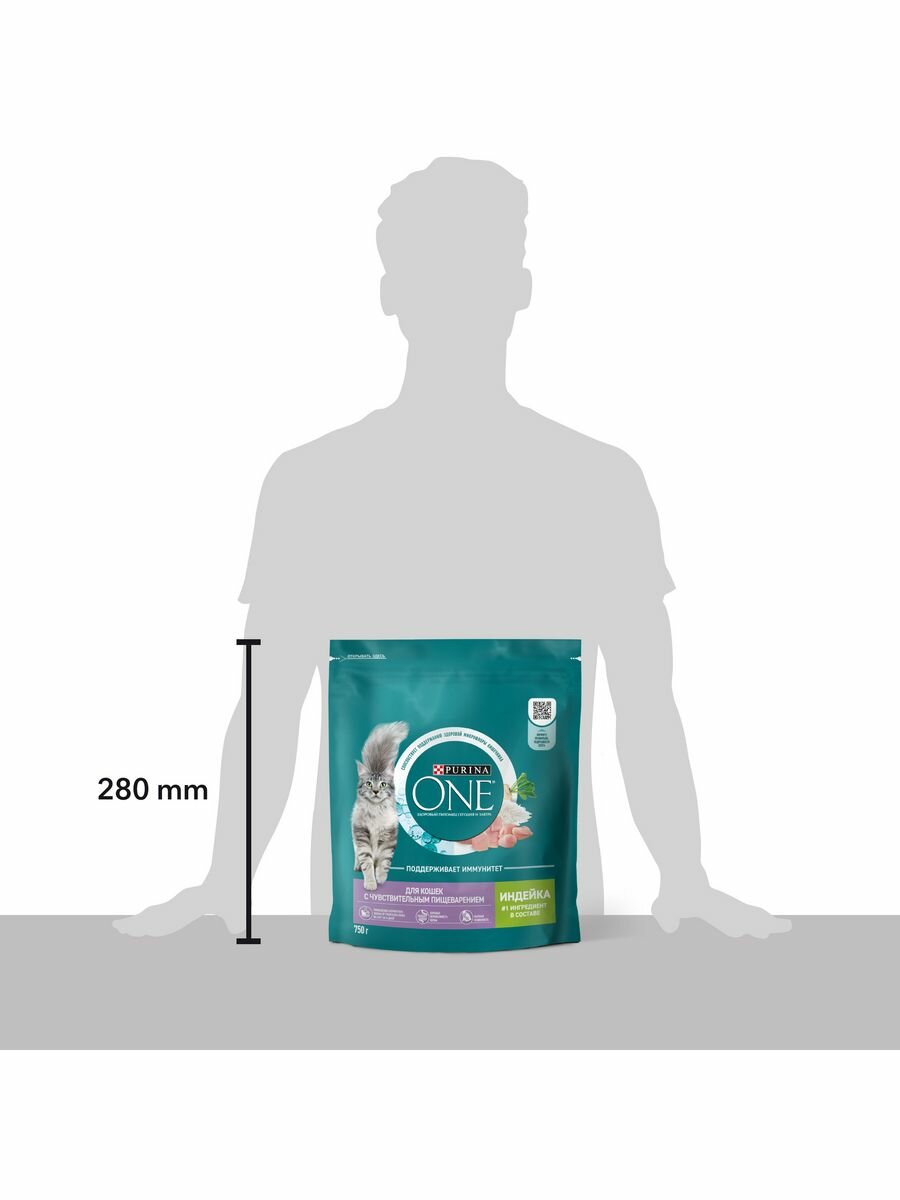 Сухой корм Purina ONE для кошек с чувствительным пищеварением с индейкой и рисом, пакет, 750 г