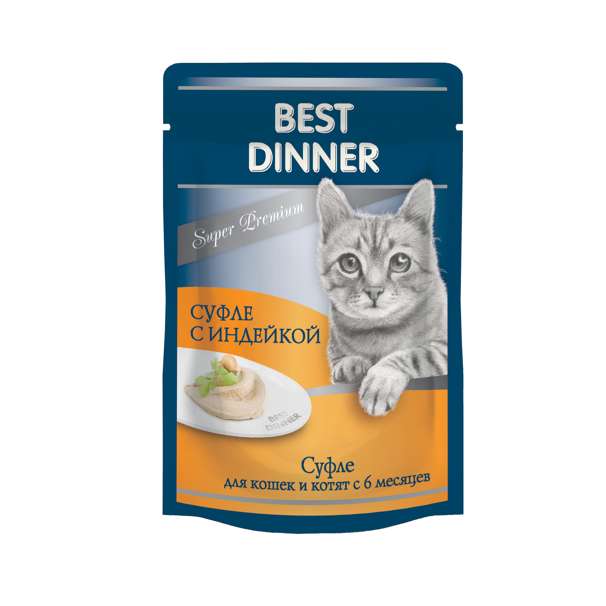 Корм BEST DINNER 85гр Для кошек и котят,суфле с индейкой