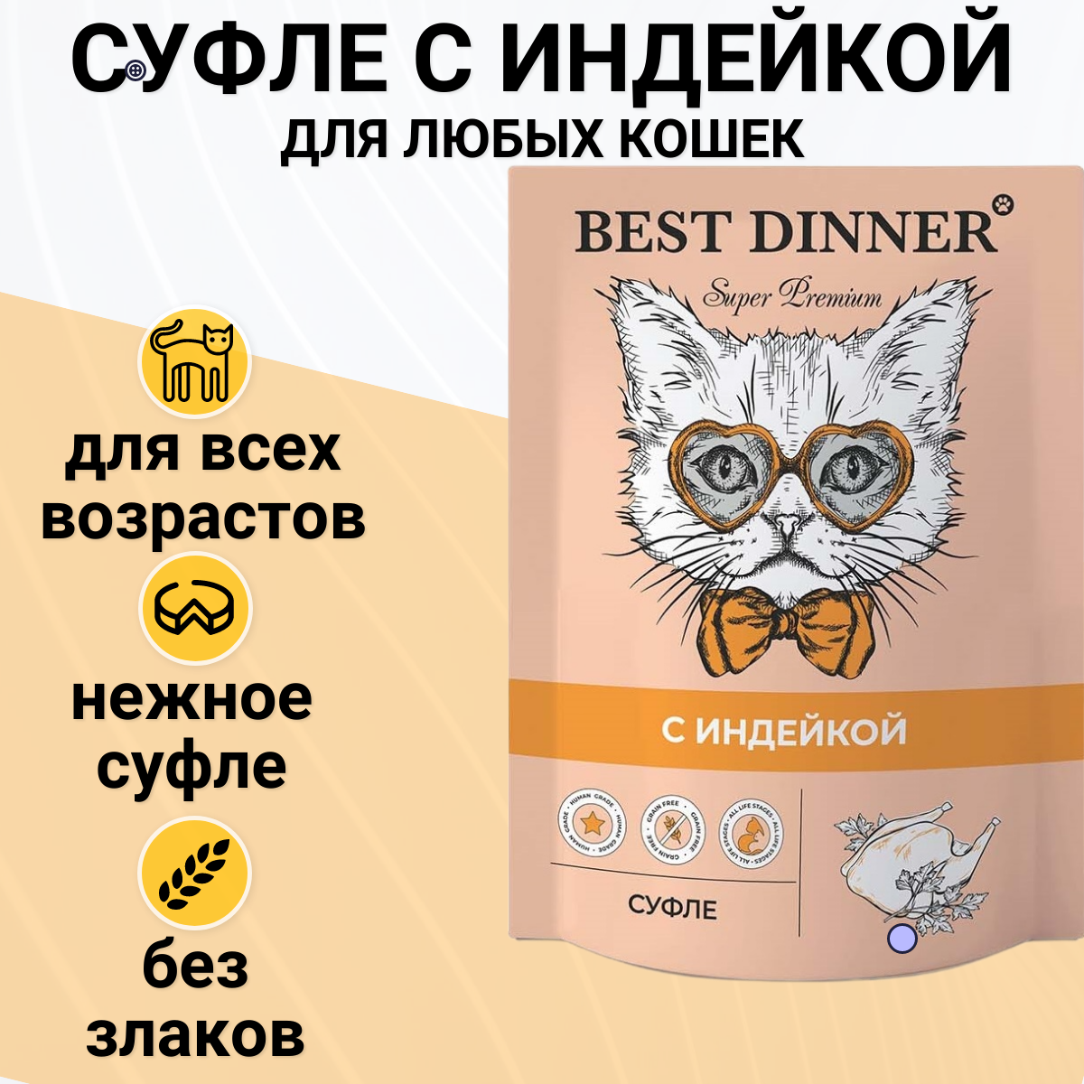 Корм для кошек BEST DINNER Мясные деликатесы Суфле индейка пауч 85г (упаковка - 24 шт)