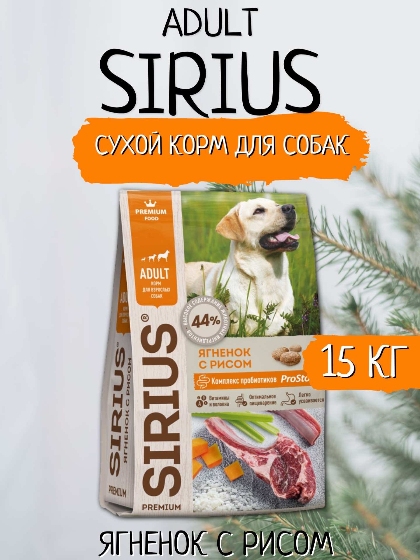 Корм сухой Sirius для собак, ягненок и рис, 15 кг